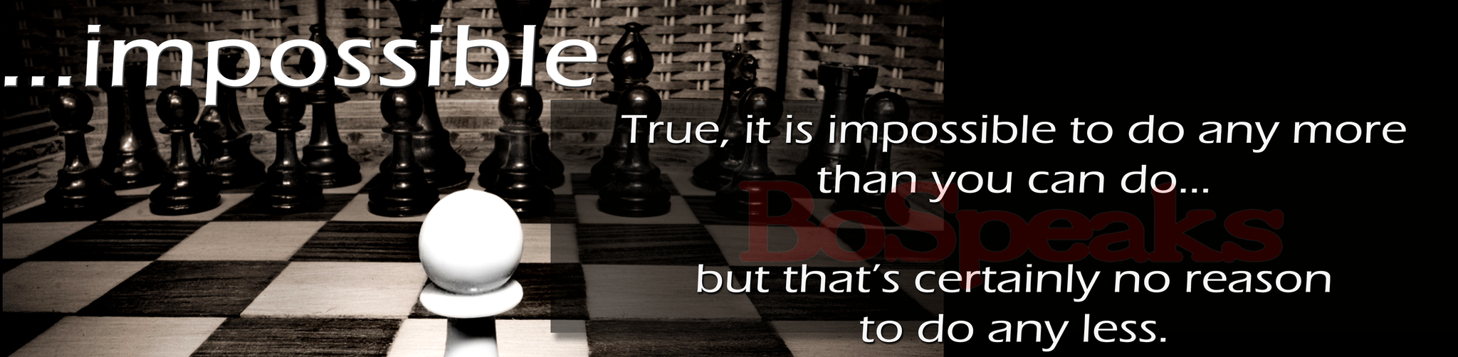 The Internet is a big place and you could have gone anywhere but stopped by here instead, Thank You! If you happen to know Bo personally you know that he has the mind of a master motivator and the gift of clarity, simplifying life's most complex concepts. Purposeful and dynamic he is intent on sharing hope to help and inspire. So take a look around. You might just find something you didn't even know was here waiting for you.